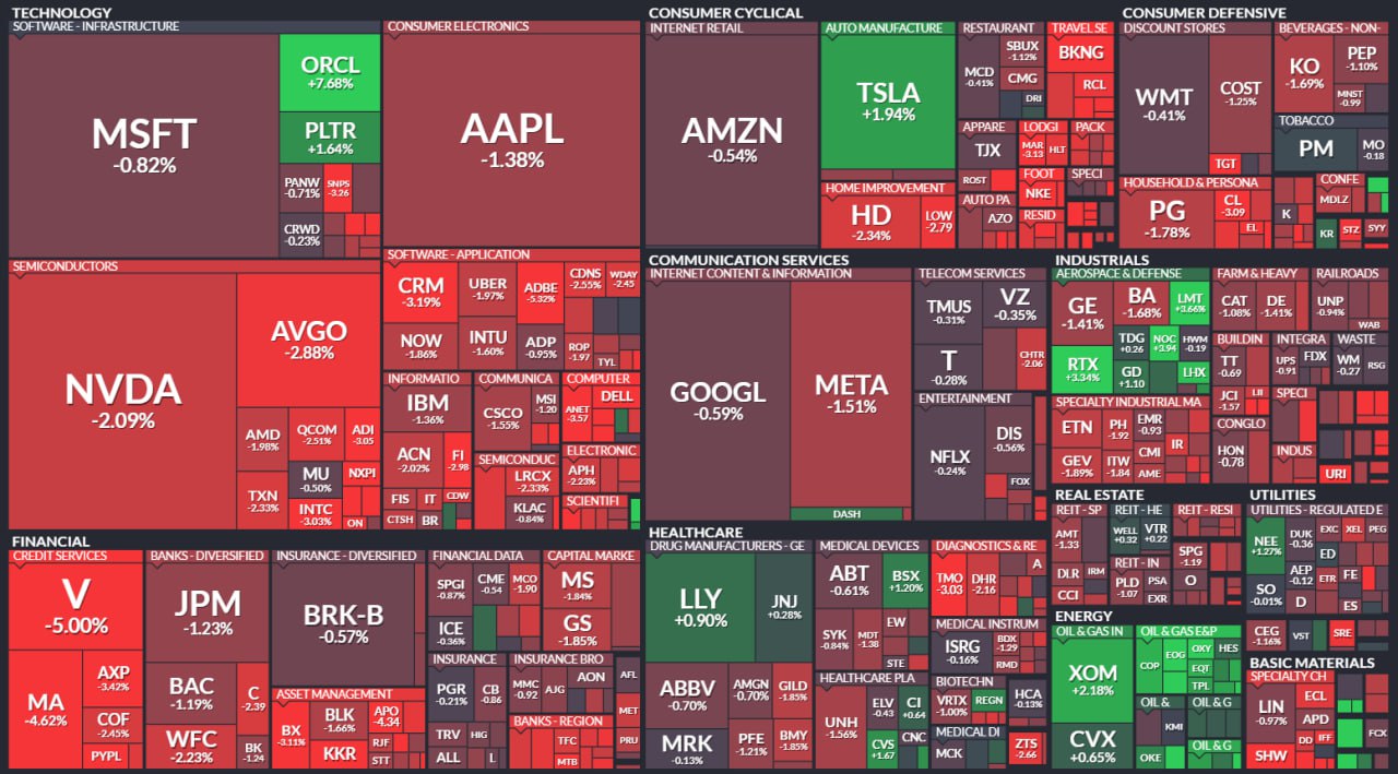 - 애플, 마이크로소프트, 퀄컴 등 기술·AI 종목도 2%대 하락, 과열 조정 흐름 발생.