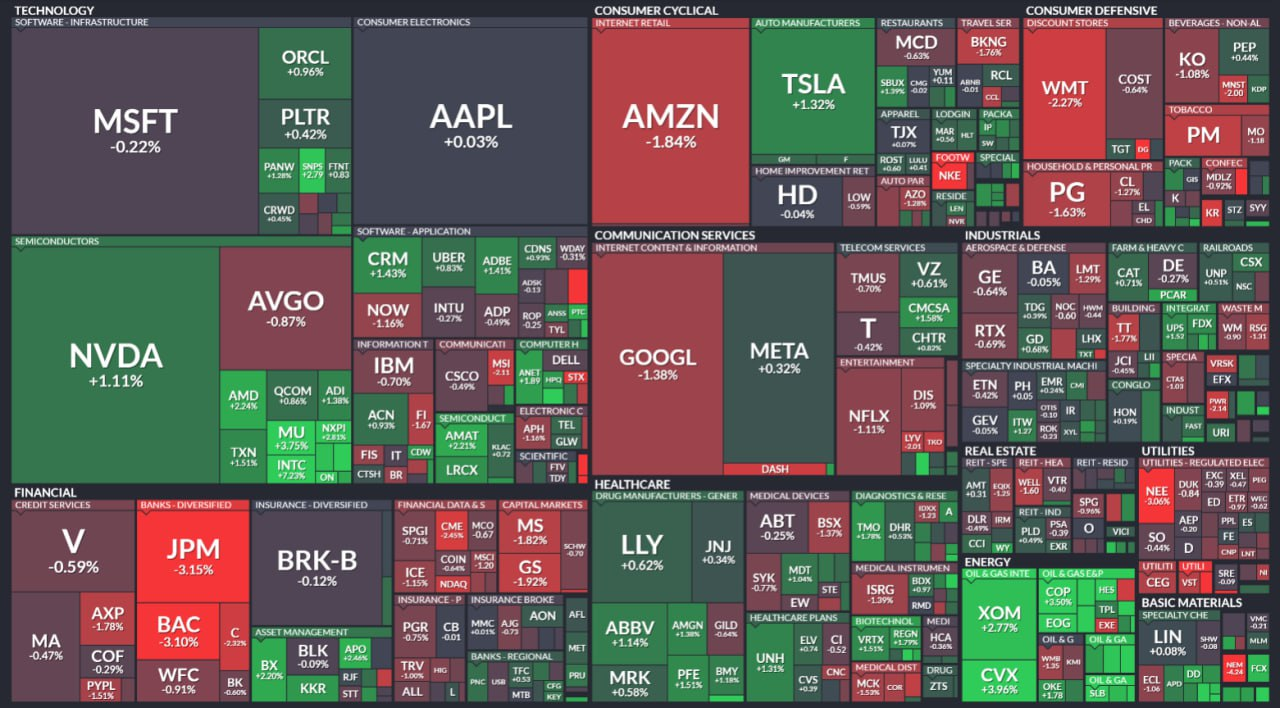 - S&P 500: –4.46pt (–0.07%) → 6,225.52pt