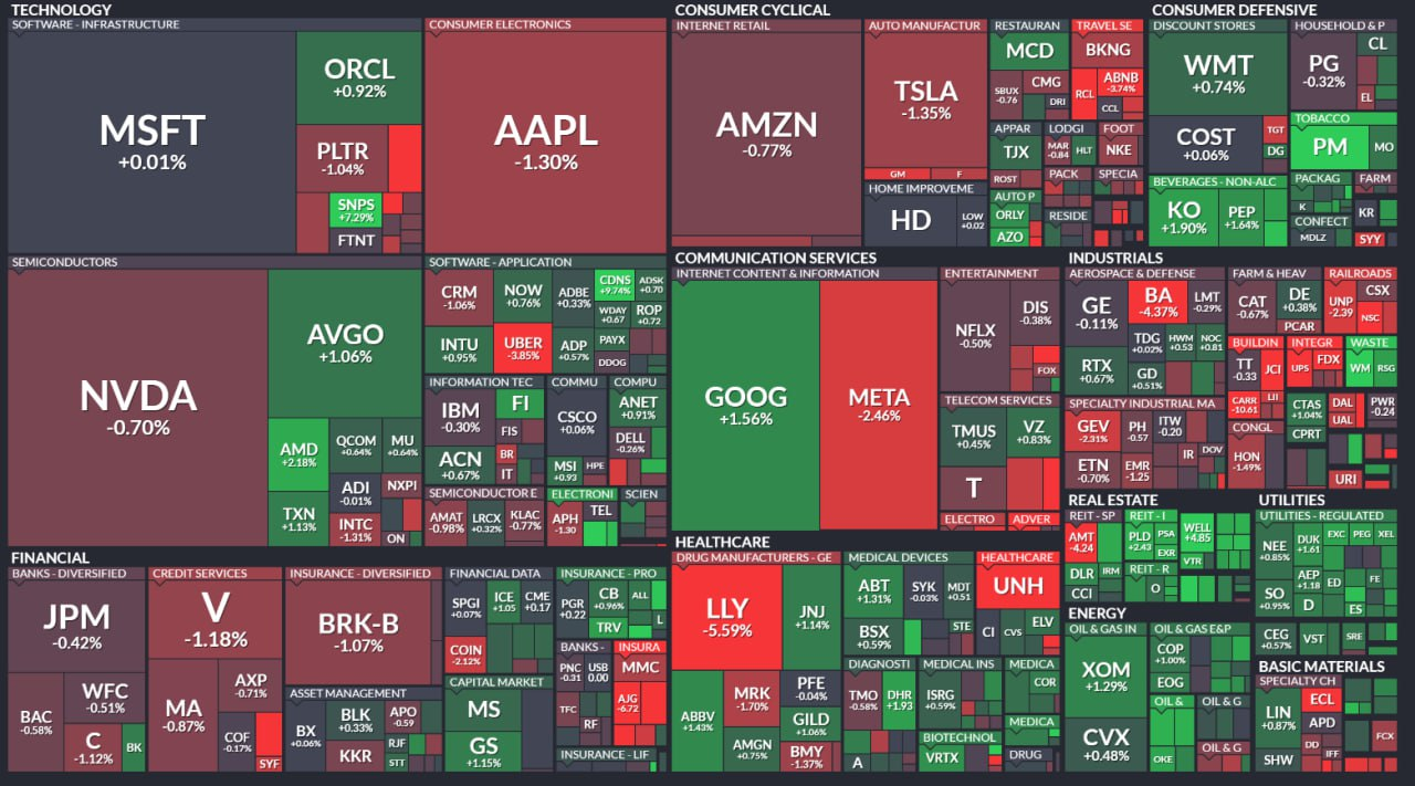 2025년 7월 29일 미국 증시는 기술주 중심의 하락세와 함께 관망세가 짙은 하루였습니다. FOMC 회의를 앞두고 불확실성이 커지는 가운데, AI·반도체주를 중심으로 차익 실현 매물이 출회되며 나스닥 하락을 이끌었습니다. 반면, 다우와 S&P500은 상대적으로 방어적인 흐름을 보이며 시장 전반이 분화되고 있습니다.